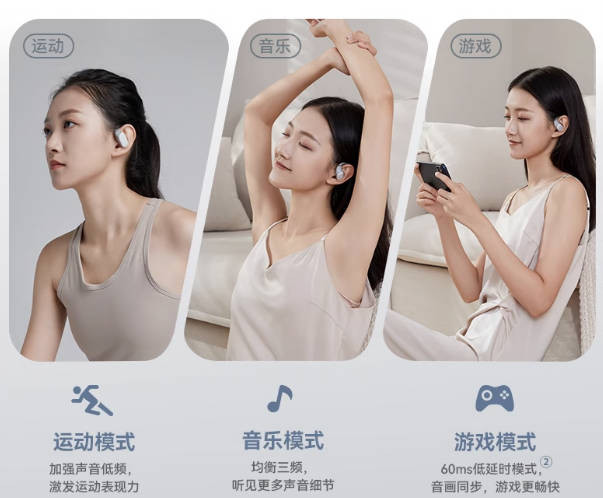 多种模式:我们对于开放式耳机的印象可能还只停留在简单的听歌或通话模式,其实现在市面上有一些耳机已经可以满足不同场景下对于音质音效的需求,做到多种模式的切换了。