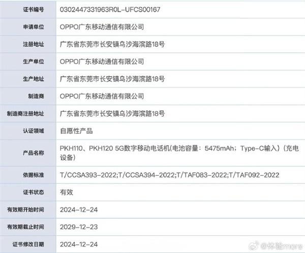 根据认证信息,OPPOFindN5内置了5600mAh的大容量电池,相比上一代N3的4800mAh电池有明显的续航提升。同时,该机支持80W有线快充和50W无线快充技术,在折叠屏手机中实现了突破。